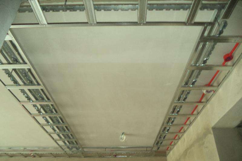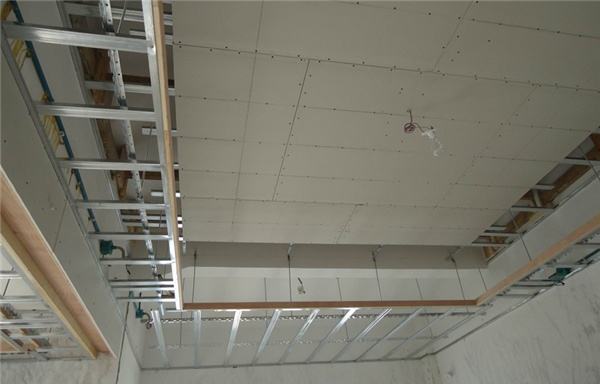 主龍骨做好也就說明吊頂?shù)闹黧w工作已完成2/3,接著我們還需要將次龍骨安裝好。次龍骨應(yīng)緊貼著主龍骨安裝,間距為300 -600mm,在安裝時(shí)我們需要用T形鍍鋅鐵片連接件把次龍骨固定在主龍骨上,次龍骨的兩端要搭在L形邊龍骨的水平翼緣上。最后我們還需要將龍骨骨架進(jìn)行全面校正,再用硅酸鈣天花板裝飾表面,這樣輕鋼龍骨吊頂工程就完成了。